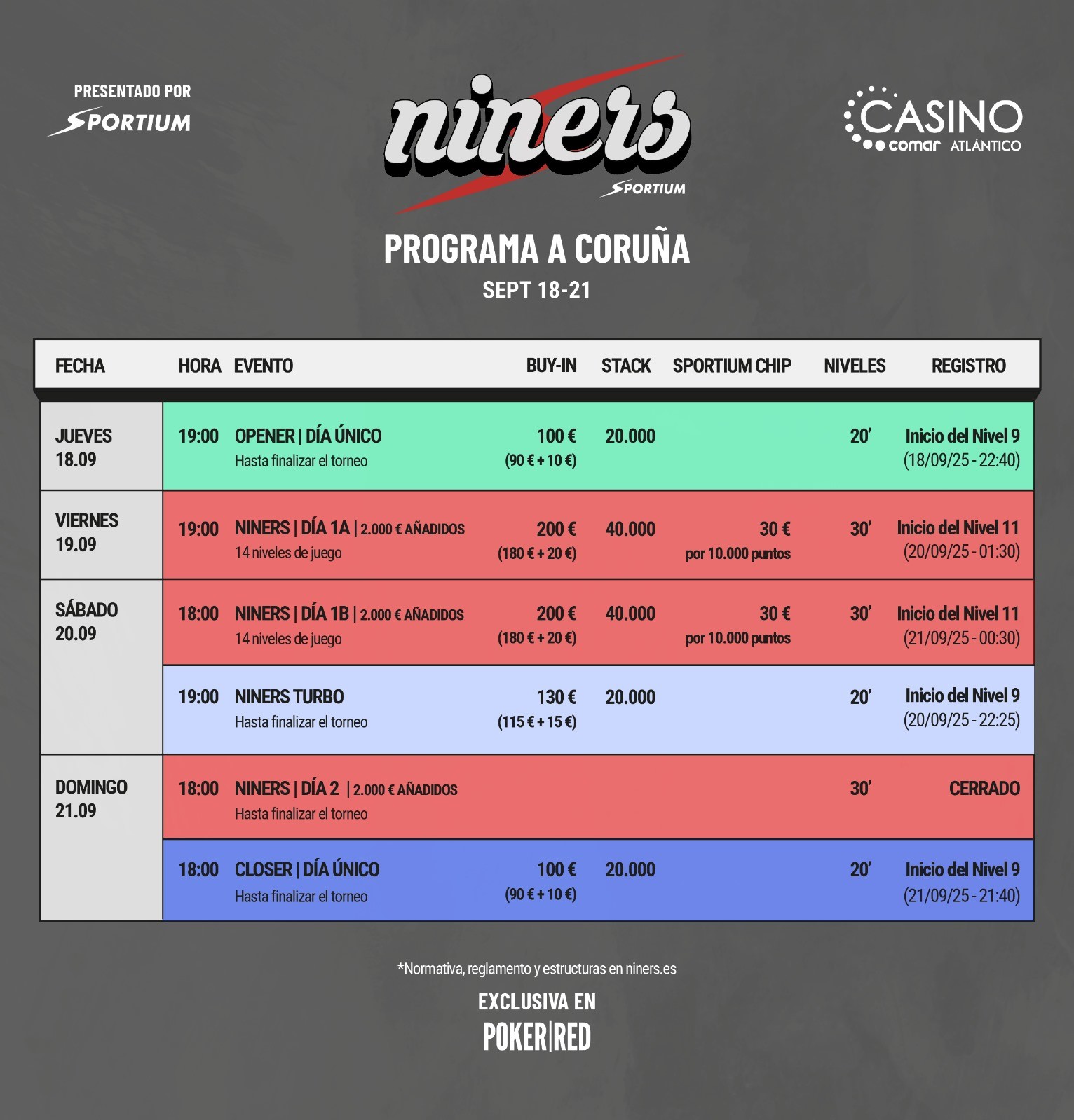 Fichas iniciales: 30K. Chip: 10€, 10K